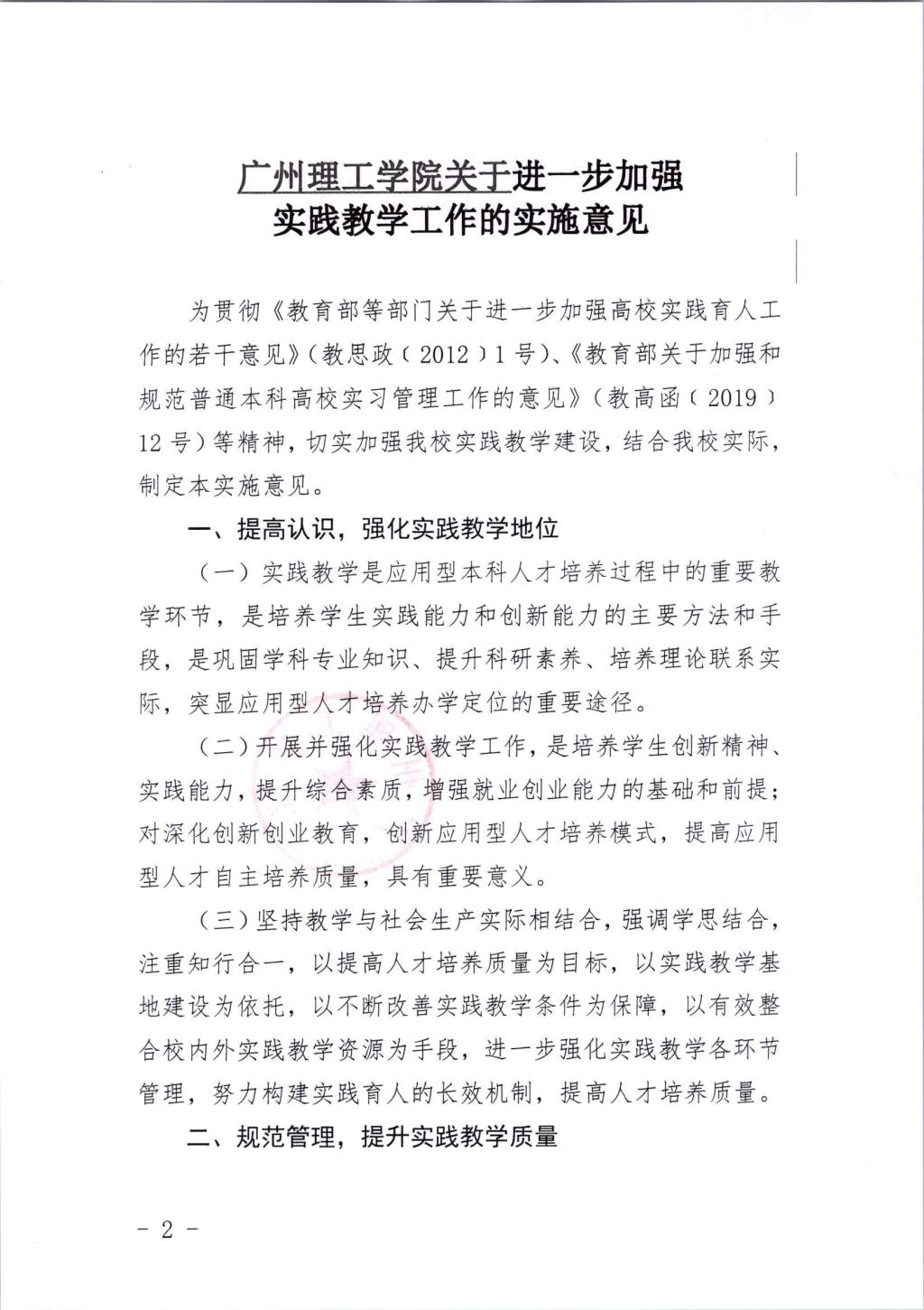 广州理工学院《进一步加强实践教学工作的实施意见》
