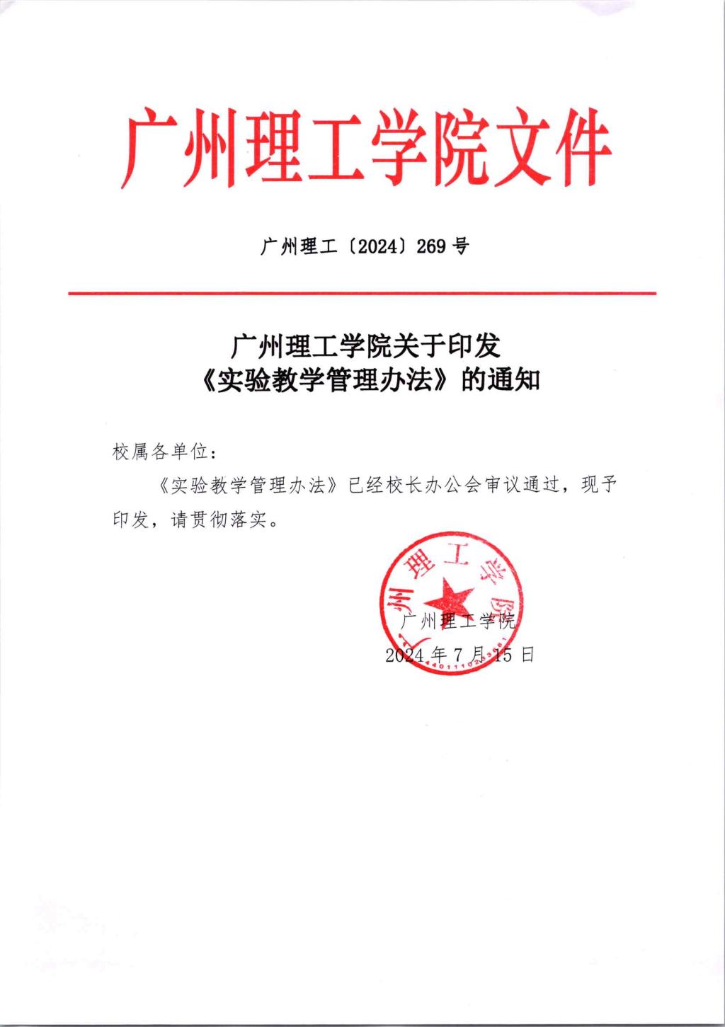 关于印发《实验教学管理办法》的通知(广州理工〔2024〕269号)以此为准.pdf