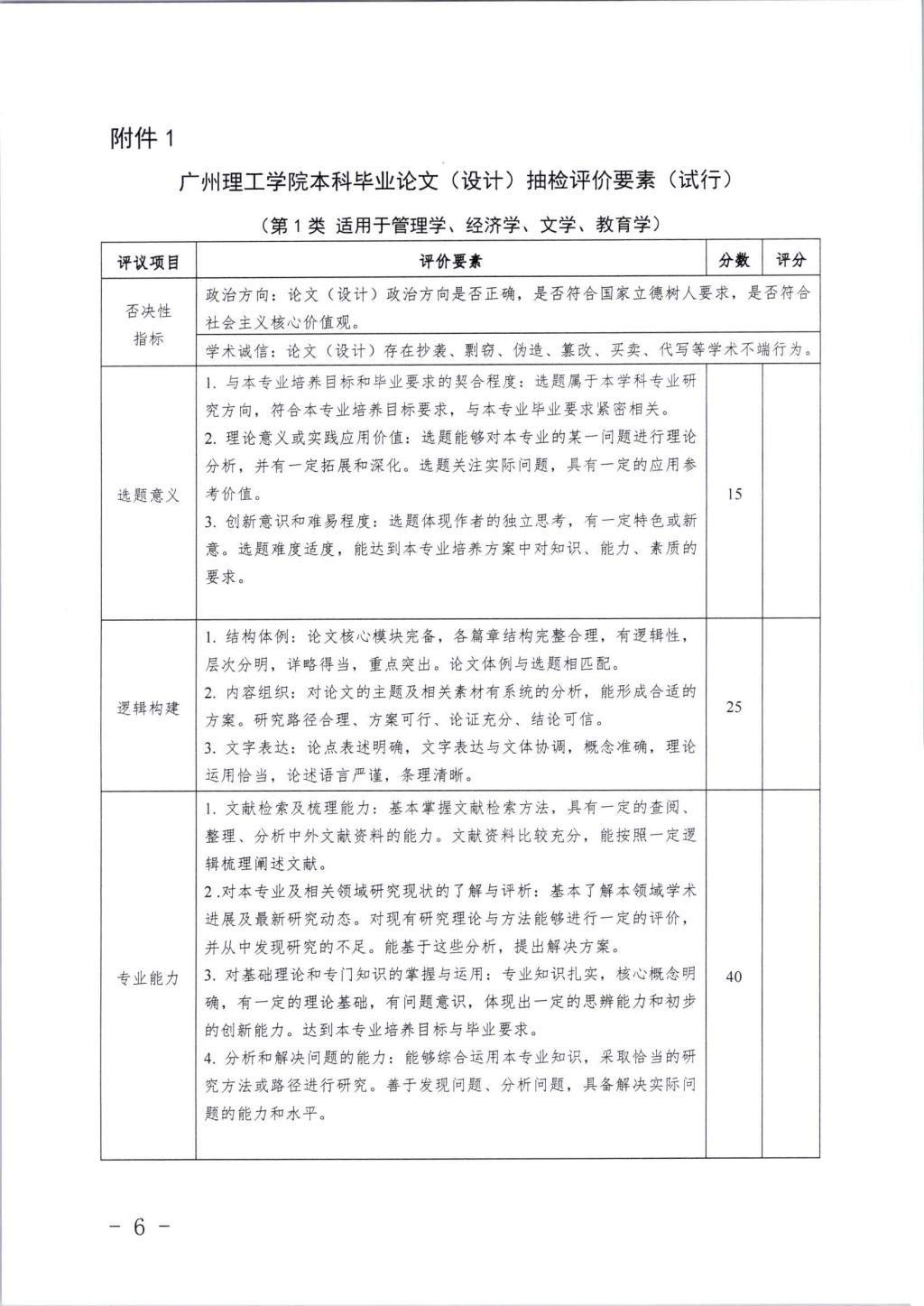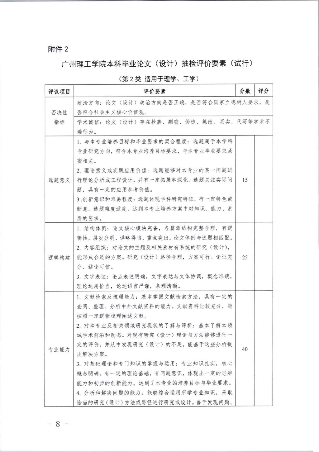 广州理工学院《本科毕业论文(设计)抽检办法(试行)》