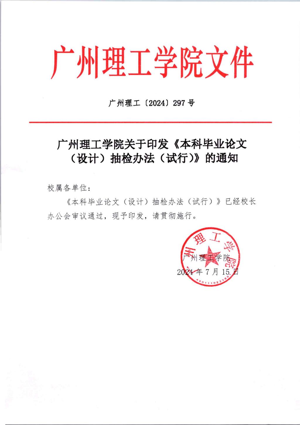 关于印发《本科毕业论文(设计)抽检办法(试行)》的通知(广州理工〔2024〕297号)以此为准.pdf