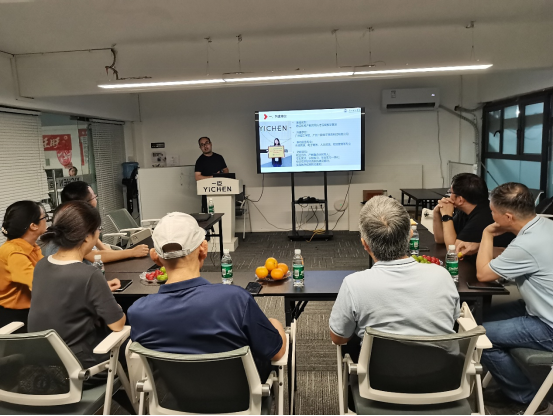 基地企业导师王骞经理作了基地建设汇报,王经理从基地共建单位、服务专业、功能定位等几个方面开始,并介绍基地建设过程,从校企合同、制度保障、安全保障等进行介绍,并汇总了过去两个学年学生在基地参与实训的全过程数据,结合学生成绩、教师团队取得成绩等方面做汇报。整个汇报过程分成五个方面,从建设基地概况、基地建设管理、基地教学实施、基地教学成果、存在与下一步工作,较全面地展现基地目前建设情况。