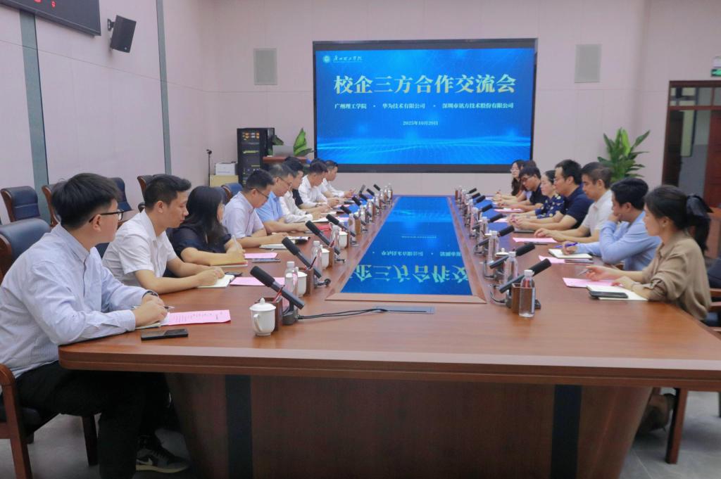 10月20日上午,广州理工学院与华为技术有限公司、深圳市讯方技术股份有限公司校企合作交流会议在学校工程楼一楼会议室成功举行。此次会议旨在汇聚三方优势,共同探索产教融合新模式,培养适应人工智能、鸿蒙生态等前沿产业需求的高素质应用型人才。学校执行董事魏凤琴、常务副校长伏焕昌,华为广东政企教育行业总经理张恒阳,讯方公司董事长戴毅等三方领导及代表出席了会议。会议由学校常务副校长伏焕昌主持。