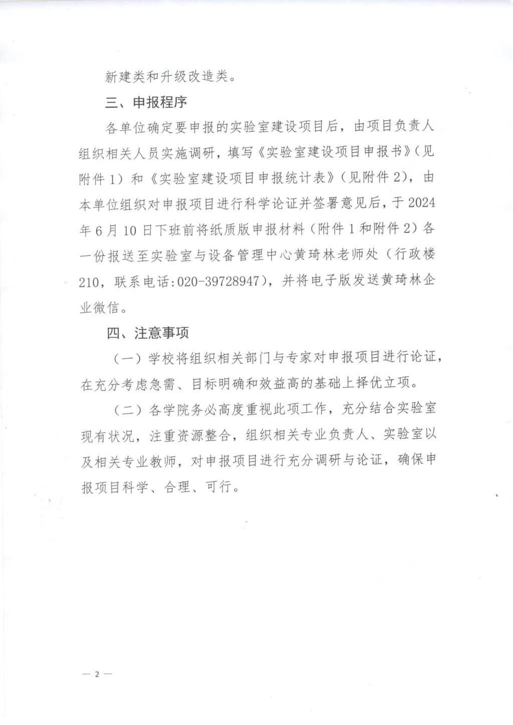 广州理工教函〔2024〕114号 广州理工学院实验室与设备管理中心关于做好2023-2024学年第二批实验室建设项目申报工作的通知