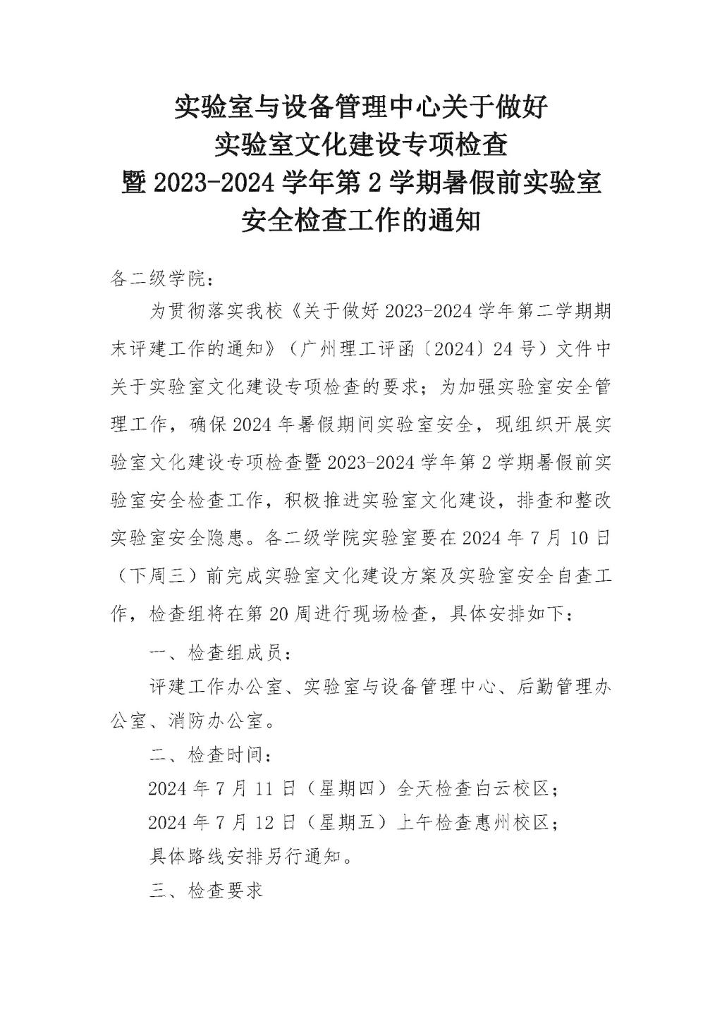 实验室与设备管理中心关于做好实验室文化建设专项检查暨2023-2024学年第2学期暑假前实验室安全检查工作的通知_页面_1