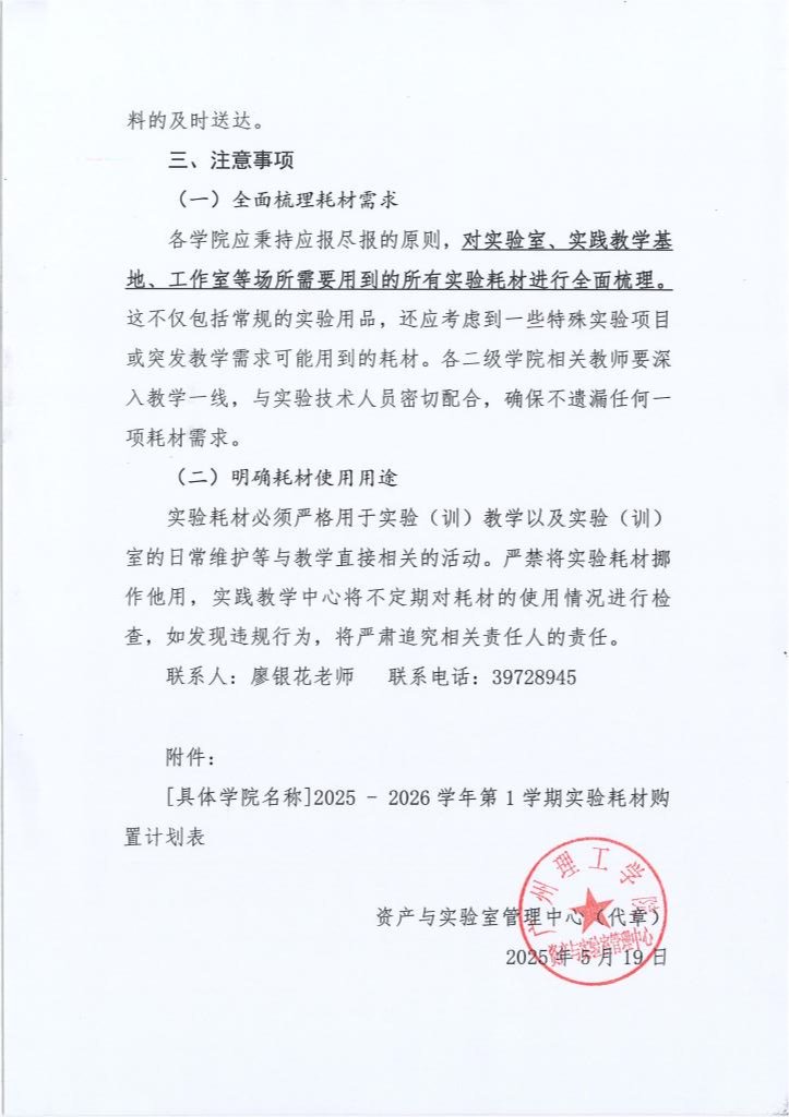 广州理工教函〔2025〕61号 实践教学中心关于申报2025-2026学年第一学期实验耗材计划的通知.pdf