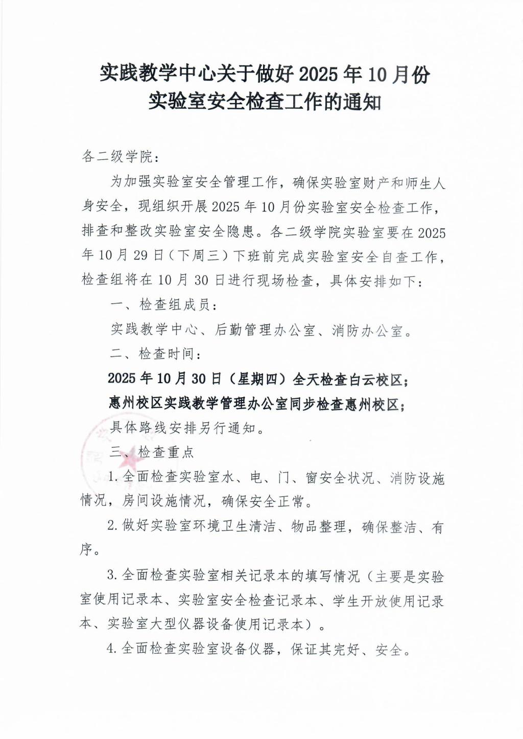 实践教学中心关于做好2025年10月份实验室安全检查工作的通知.pdf