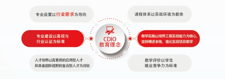 人才培养理念:基于CDIO工程教育理念的人才培养模式:CDIO[构思(Conceive)、设计(Design)、实现(lmplement)和运作(Operate)],有效实现OBE理念和通过工程教育专业认证的工程教育模式。