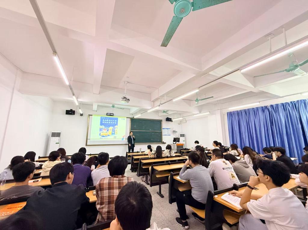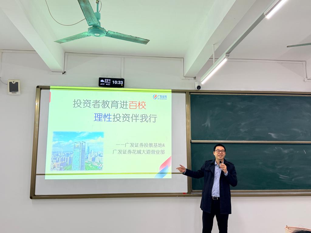 为持续深化校企合作内涵,推动行业资源与课堂教学有机融合,2025年10月29日,我校经济管理学院特邀广发证券高级投资顾问邵嘉铭,作为我院金融系专业校外实习的企业导师走进课堂,开展“投资者教育进百校·理性投资伴我行”主题授课。本次系列校企活动由经管院副院长陈少英统筹牵头,金融系主任黄爱青主持,肖丽娜老师全程组织,23级金融、23级互金、25级金融等专业学生共同参与学习。