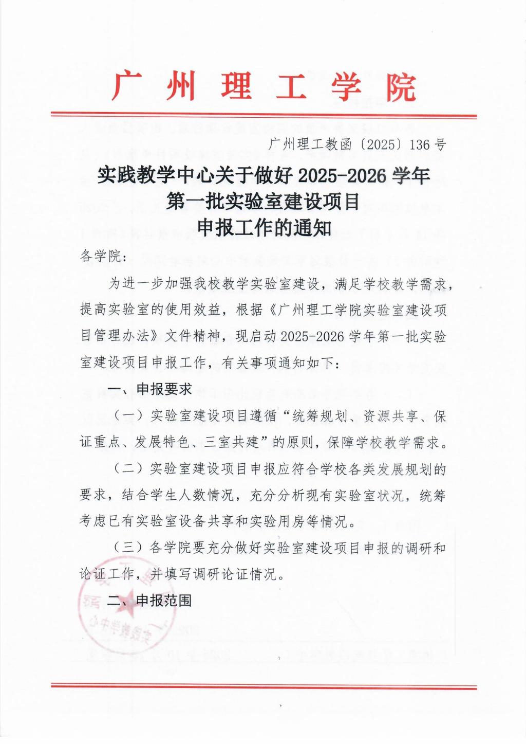 实践教学中心关于做好2025-2026学年第一批实验室建设项目申报工作的通知.pdf